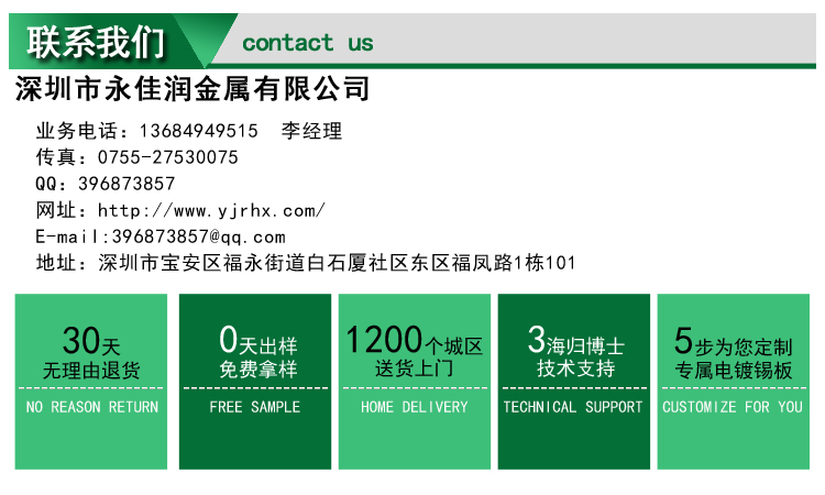 廣泛應(yīng)用于電鍍、線路板制作、電子工業(yè)等行業(yè)。產(chǎn)品符合日本工業(yè)標(biāo)準(zhǔn)JIS Z3283-A級(jí)和美國工業(yè)標(biāo)準(zhǔn)QQS 571E的要求,本產(chǎn)品永佳潤陽極板得到廣泛知名企業(yè)的認(rèn)可,客戶可以百分之百的放心使用。